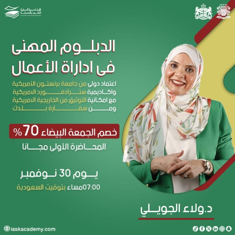 ندعوكم الأكاديمية الدولية للتدريب للتسجيل والإشتراك بـ ” الدبلوم المهني في إدارة الأعمال”